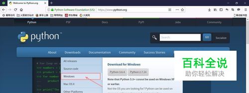 首先,需要到python的官方网站下载python的安装包。python官网的链接地址:https://www.python.org
