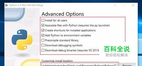 选项默认即可,Customize install location(自定义安装路径),由于默认的安装路径太深,不方便我们找到安装文件,因此我们自己改为较浅且好找的路径:D:\Python\Python37,然后点击Install(安装)。