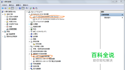 安装驱动后,如果证书管理工具内还是没有显示证书,请在“我的电脑”上单击右键-管理-设备管理器,点开DVD/CD-ROM驱动器,看看下面"FT Interpass"那一串前面的图标是不是有感叹号?通用串行总线控制器下面的“USB大容量存储设备”有没有感叹号?如果上面有感叹号,下面没有,那么我们看下一步的解决方法。