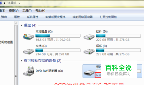 点击完成,再打开我的电脑,惊奇的发现优盘变大了
