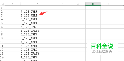 打开带有要处理文本的excel文件,先观察文本的情况,可以看到小编使用的这组文本名字具有统一的规律,但是我们只需要其中的一部分信息,比如打头的字母