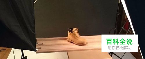 背景方面在背景架上挂上一张黑色背景纸,目的是减少不必要的反光,然后在桌上拍摄。而本来打算把鞋放在长形木板上拍摄,但无奈准备时发生一点意外未能找到合适道具,故在影楼中找来多条长形木条拼在一起。(所以说随机应变都是摄影师的技能之一)