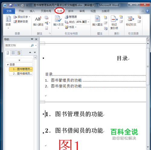 1、点击“引用” 2、选择“目录” 3、选择“插入目录”