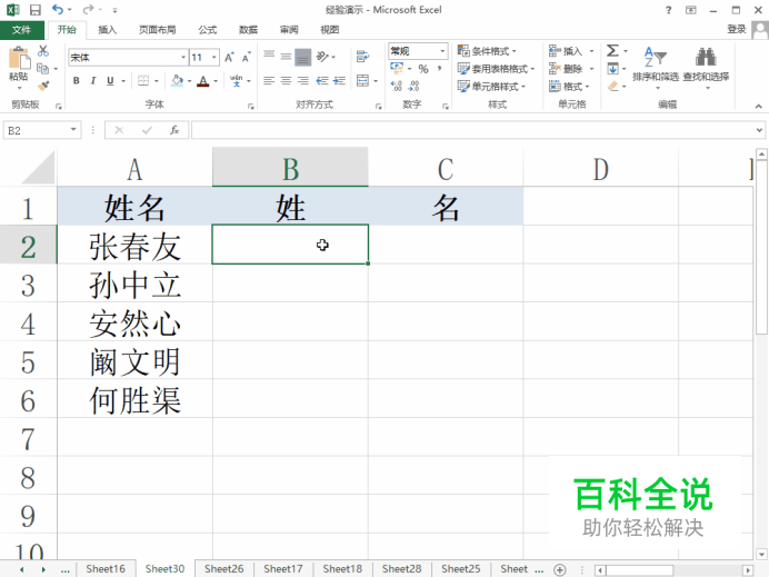 完成从姓名中提取“姓”和“名”。 现在在Excel工作表中可以看到已经从姓名中提取出了“姓”和“名”。