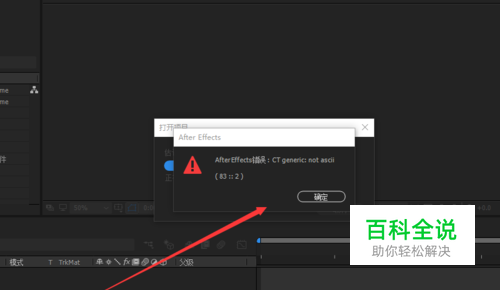 AE CC 2017打开工程的时候,会出现83::2 CT generic not ascii错误提示,这个错误是由于中文字体兼容问题出现的,这个时候无法关闭弹窗,那怎么解决呢?下面我来给大家说下方法