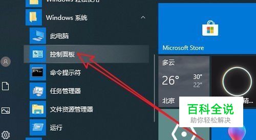 我们在Windows10桌面上,依次点击“开始/Windows系统/控制面板”菜单项。