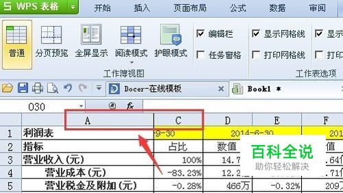 在打开excel的时候,发现有一列不见了,如图,没有显示B列,怎么解决呢?可能我们会首先想到的是不是这一列被隐藏了,点击取消隐藏,却发现还是没显示出来。