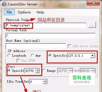 解压刚才下载回来的Cassinidev,双击打开“CassiniDev.exe”,将里面的目录、IP、端口设置好,然后点击右下角的"start"按钮开始。