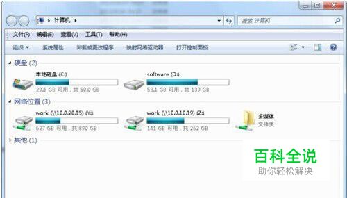 6、做好以上设置后,重启电脑,然后在打开我的电脑,就可以看到磁盘的盘符已经修改好了,小编这里C盘也另外修改了,用这种方法可以修改磁盘、U盘的盘符,但是类似于小编这里的映射的网络服务器等磁盘的盘符的图片用这种方法是修改不了的。