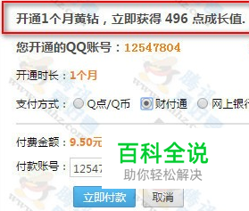 打开黄钻BUG开通地址:连接我会发到评价那!可以看到提示开1个月黄钻,立即获得496点成长值。