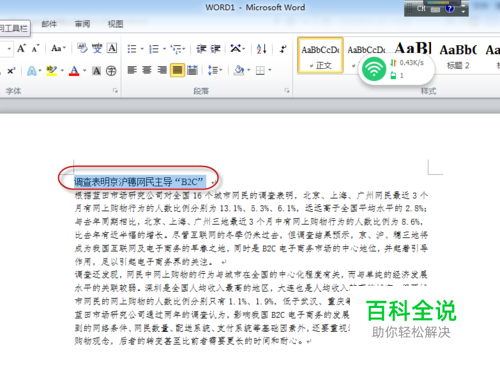 选定标题文字”调查表明京沪穗网民主导“B2C”“;例,如图