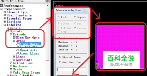 ansys如何使用面拉伸成体的命令(extrude)?