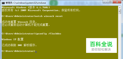 当我们输入上面的重置命令后,然后在继续输入重置DNS命令,重置完成后,我们将DNS设置为固定值。