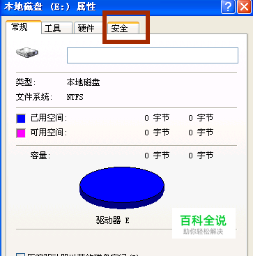打开E盘的属性,找到“安全”选 项卡