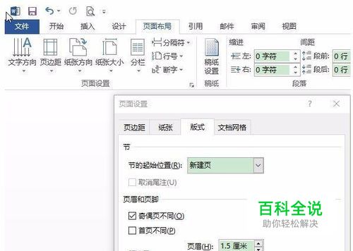 双面打印页码外侧对齐: 大多数打印机均支持半自动双面打印,也就是先打印出奇数页,然后再将纸面翻过来再打印所有偶数页,故我们需要对奇数页和偶数页分别进行设置。如果打印出来的文档准备在左侧装订,页码最好放在右侧,这时奇数页的页码保留在右侧,而偶数页的页码反而要移到左侧。 首先切换到“页面布局”选项卡中,点击展开“页面设置”,在打开的窗口中切换到“版式”,然后勾选“奇偶页不同”项,点击“确定”返回。