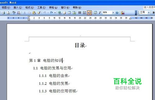 接着将鼠标的光标定位到目录中的各项和页码之间,再点击键盘中的“Tab”键,便看到在各项和页码之间出现了小数点,这些小数点把页码推到了我们之前设置的“右对齐”、“39”的位置。最后,用同样的方法依次将目录中的各项完成。大功告成!