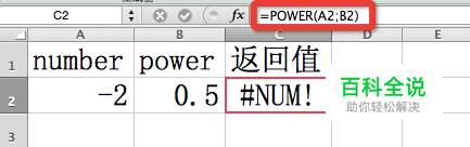 函数说明: 两个参数可以是任意实数。当参数power的值为小数时,表示计算的是开方。当参数number取值小于0且参数power为小数时,POWER函数将返回#NUM!错误值。