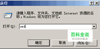 Ping命令详解 首先需要打开DOS命令界面,通过点击开始菜单中的“运行”选项,输入“cmd”, 回车即可打开(如下图)。
