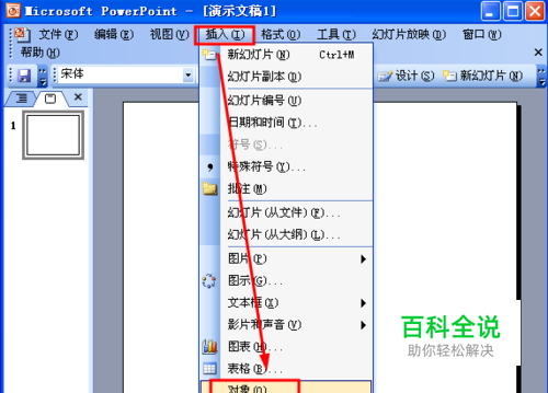在插入图片前,先依次点选菜单“插入-->对象”。