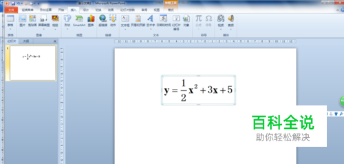 第一步:打开PPT2010,使用公式编辑器里输入公式。