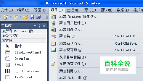 在visual studio编辑器中打开要编辑的程序,点击【项目】-【属性】。