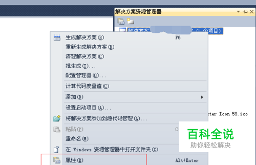 或者通过【解决方案资源管理器】窗口的右键菜单中打开属性窗口。