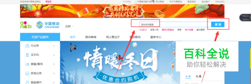 搜狗搜索中国移动,选择出现的第一个页面,“中国移动晚网上营业厅--移动官网”如图所示。