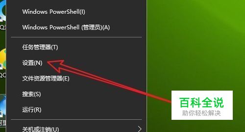 在Windows10系统桌面,右键点击左下角的开始按钮,在弹出菜单中选择“设置”菜单项。