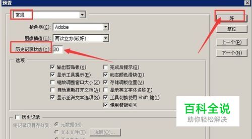 在弹出的预置对话框中,常规选项下,选择历史记录状态,可以修改后面的次数,改好后,点好的按钮就可以了
