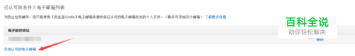 继续向下浏览,【已认可的发件人电子邮箱列表】,这里可以添加发送文件的邮箱地址,就是发件人。可以添加20个。 这个好处就是,你可以添加好友的邮箱,如果好友有什么好书,可以直接发送到你的设备上。