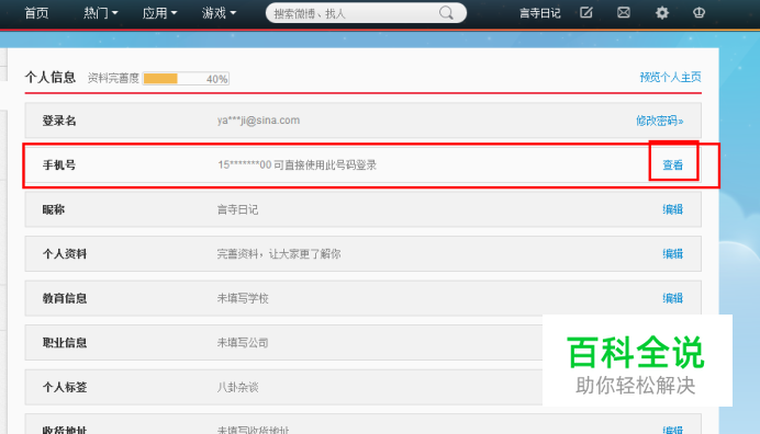 在账号是设置中,找到手机号这一分组,选择查看,如图: