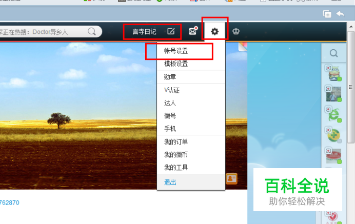 登陆自己的新浪微博,在设置的下拉菜单找到“账号设置”。