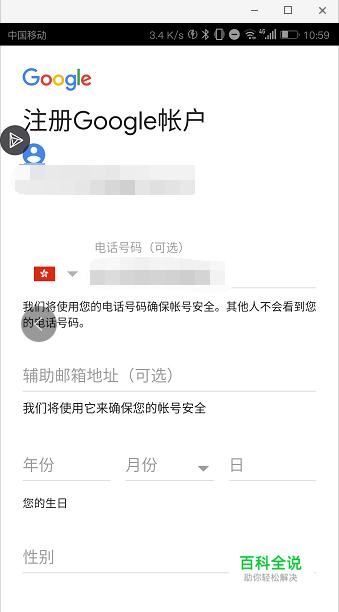 点击注册谷歌账号,就会进入下面注册的页面,不过有一点千万要注意哦,姓氏和名字不要起的太随意,用户名和密码不要设置的太简单,否则会导致注册失败。