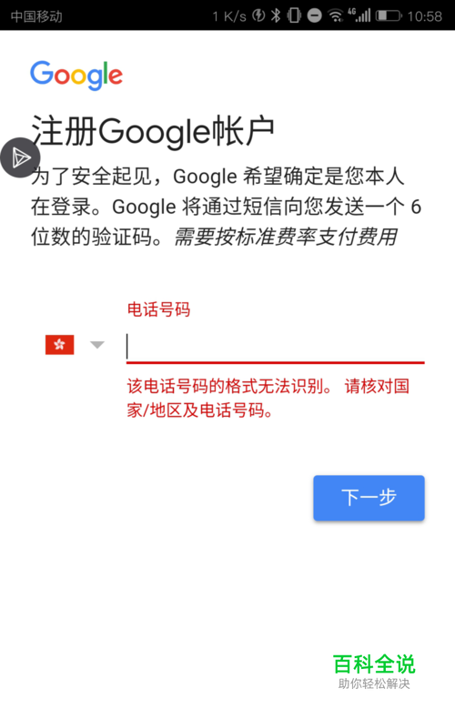 内容填写完整之后,点击进入下一步,重点来了,就是验证电话号码。 注意注意:填写号码的时候,因为是国内的号码,所以一定要注意前面+86,不然就会无法识别呦。