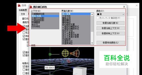 然后打开 颜色 选项,把 图纸布局 的背景颜色改为 黑 色,这样方便我们看的清楚。