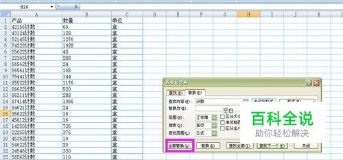 在查找内容中输入文本:计数,替换输入框中不输入(空白),最后点击:‘全部替换“。