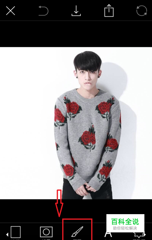 再次打开PicsArt-画图-画笔-颜色为白色(把人物的头像涂抹掉) 如图。打勾