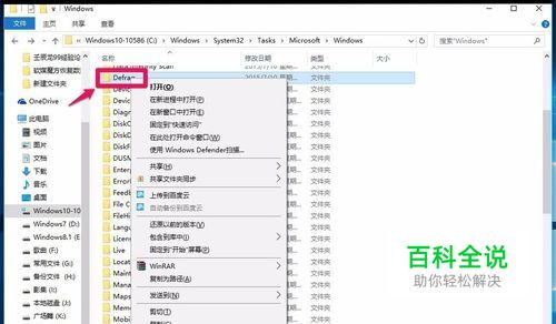 在Windows文件夹中找到:Defrag文件夹,并右键点击Defrag,在右键菜单中点击:重命名;