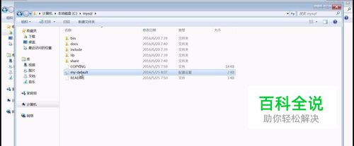 解压之后可以将该文件夹改名,例如mysql,放到合适的位置,比如放到C:\mysql路径中。