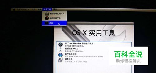 在右上角找到实用工具,在里面找到终端,找不到的话可以直接spotlight搜索输入“终端”。找到终端以后,在里面输入resetpassword