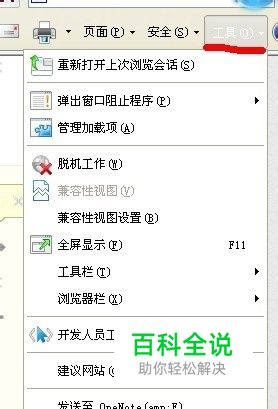 在右上角注意选择菜单栏,然后选择工具-internet选项,进入相关的配置界面。