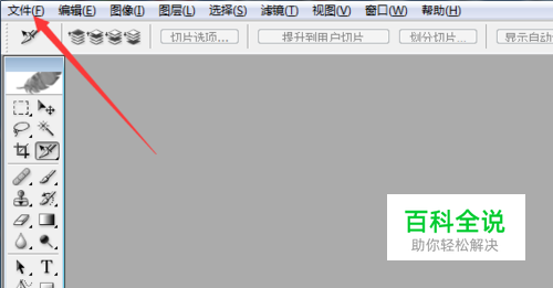 启动photoshop程序,单击文件→打开,打开一张预先准备好的要切割的图片。