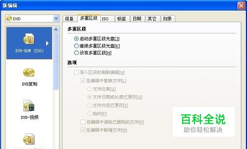 点击左栏DVD选项。选择你用的镜像格式。右栏默认“启动多重区段光盘”。