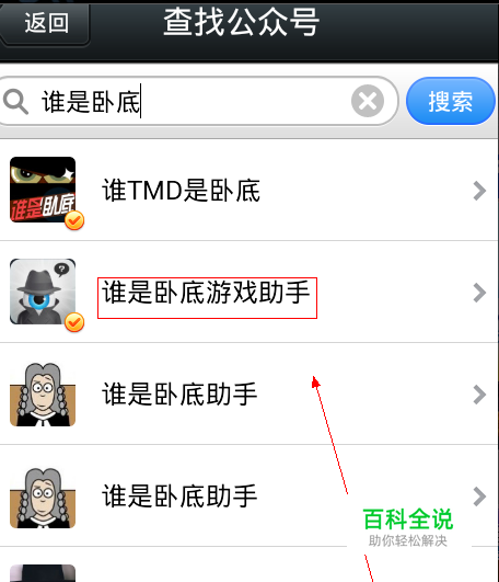 第一步——首先要关注提供卧底游戏的公众号,这里以【谁是卧底助手】为例。所有要玩游戏的玩家都得关注,因为这样它才会提供服务。