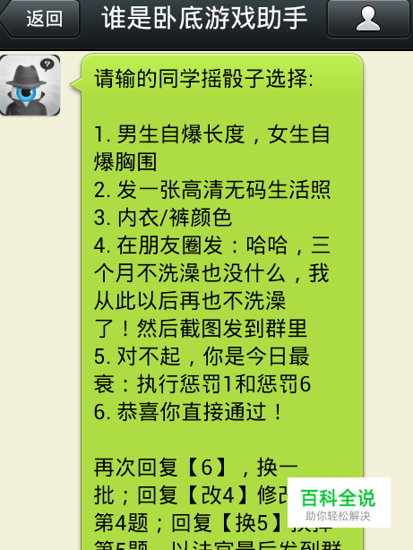 第五步——当所有人回复完房号后,【谁是卧底助手】就会分配相应的序号和纸条给玩家。这时候就要按照序号来,一个一个描述手中的纸条。最后被抓出来的卧底,还有相应的处罚等着他们呢。