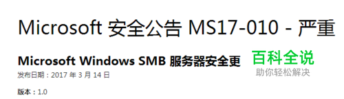 介绍给永恒之蓝漏洞打补丁的方法。官方网址:https://technet.microsoft.com/zh-cn/library/security/MS17-010