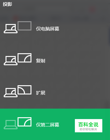 方法③:鼠标左键点击屏幕右下角日期右边的信息框→所有设置→系统(显示、通知、应用、电源)→显示→多显示器→仅在2上显示。 方法②和方法③的最后三步操作是一样的。