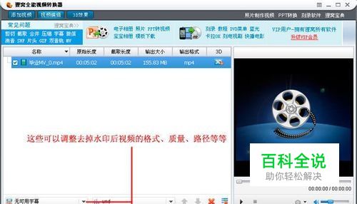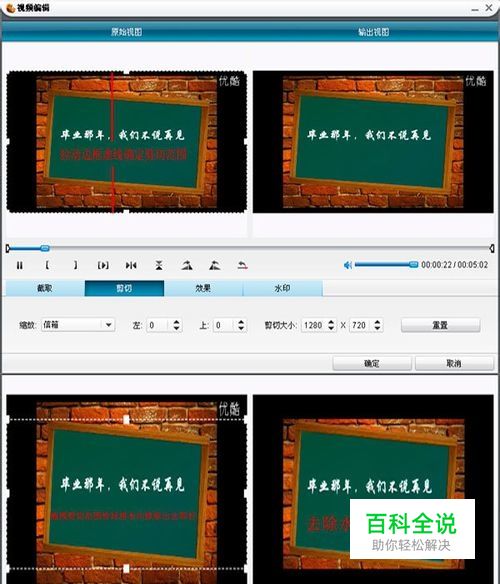 调整剪切范围后点击确定,回到主界面还可以调整视频输出的格式、大小以及输出路径等等。点击右下角那个按钮,进入等待视频生成,成功后即可以查看去水印后的视频效果