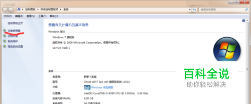 将鼠标放在计算机位置上点击左键再点击“属性”后,点击左侧的设备管理器