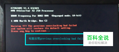 今天小编打开电脑,出现故障“previous overclocking had failed”,按任何键没有反应,觉得应该是硬件出故障了,结果把电脑所有接口都拔下,然后连接好,故障依旧存在。